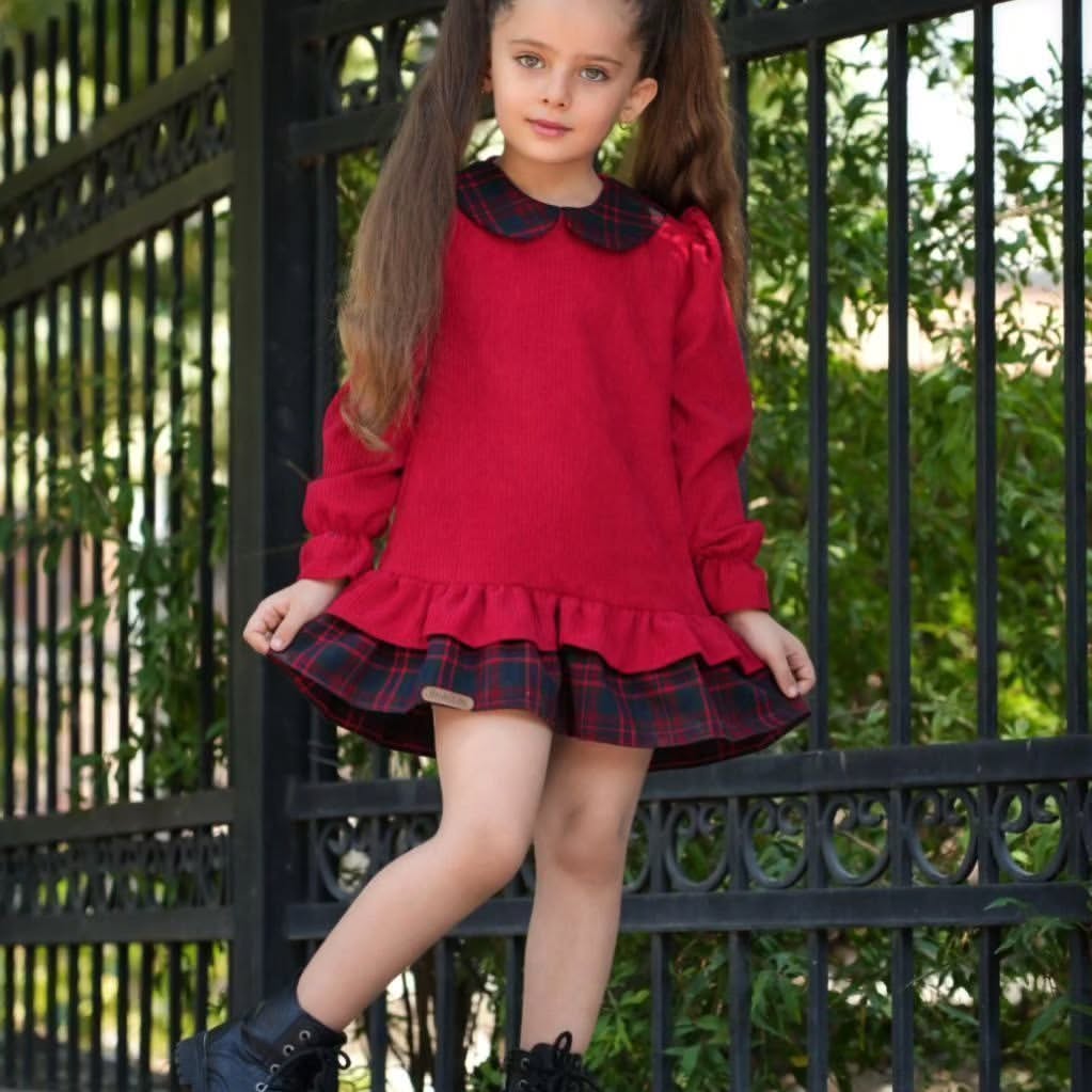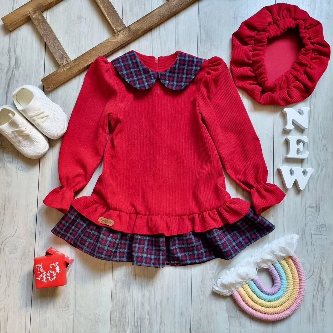 ست دو تیکه کلاه و تونیک دخترانه با جنس مخمل کبریتی